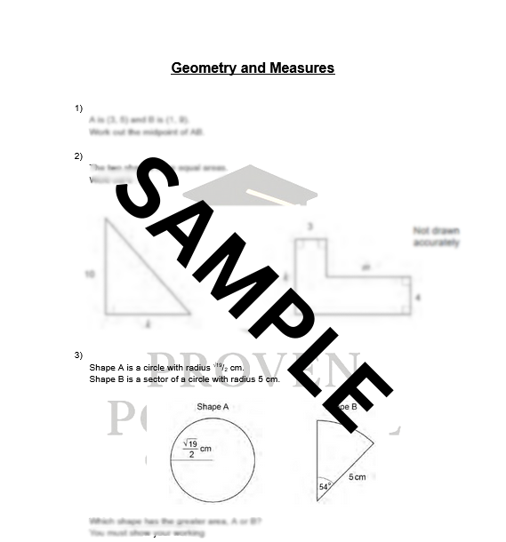This is a set of 60 questions based on the AQA specification of the ‘Geometry and Measures’ topic. A worked solution document is included. This worksheet is designed for the AQA worksheet but can be used for other exam boards.